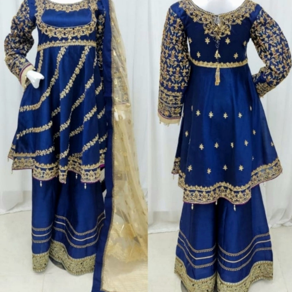 Our beautiful peplum style party wear outfit comes with a plazzo.. Fabric: Raw silk