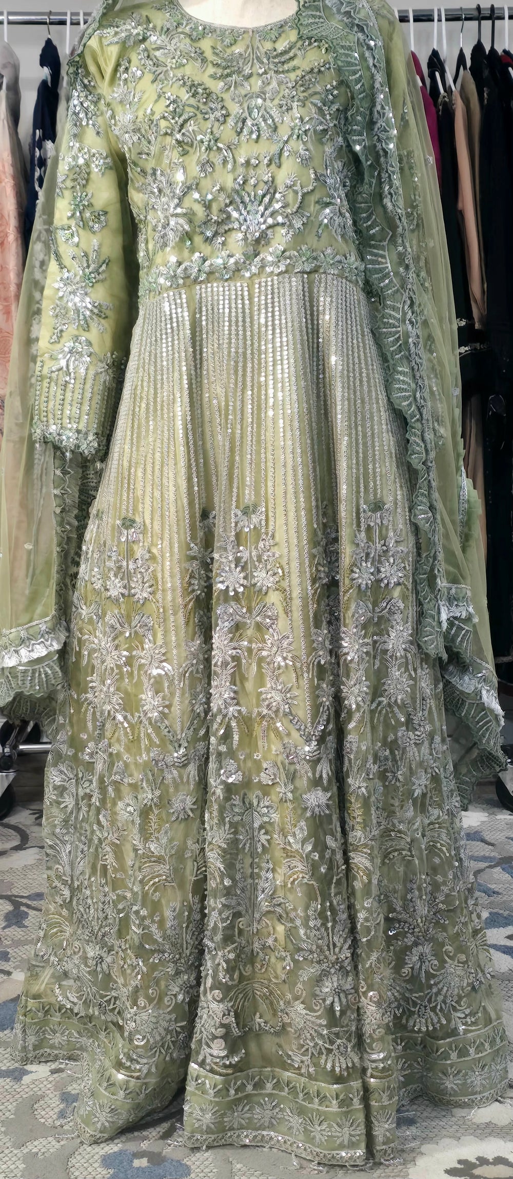 Length: 60 inches with hangings Bust: 40 inches Fabric : Net
